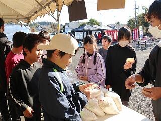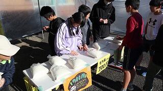 昨日は、JA三納の収穫祭で、5年生がもち米の販売を行いました。JA青年部の皆さんに協力していただき収穫したもち米を直接お客さんに販売するという初めての経験でした。