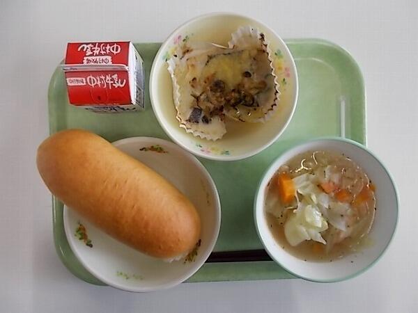 中学部の献立は「ミルクパン、野菜スープ、魚のチーズ焼き」でした。