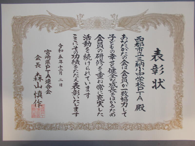 日頃よりご協力いただいている保護者の皆様、誠にありがとうございます。また、宮崎県PTA連合会の皆様、本校の取組を表彰していただきありがとうございました。心よりお礼申し上げます。