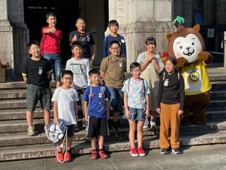 最後の見学地は宮崎県庁です。本館玄関前にはみやざき犬のむうちゃんがお出迎え。