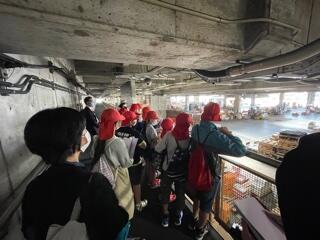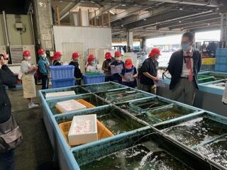 せりは早朝から行われるとのことで、市場内に設置されているカメラの映像を見せていただき、せりの様子を見ることができました。