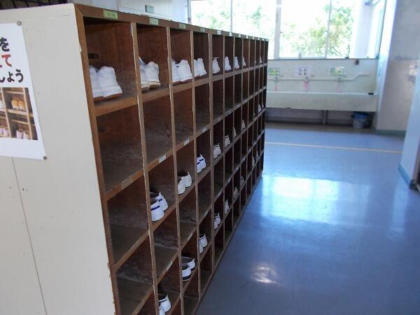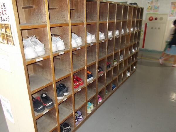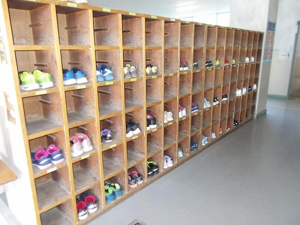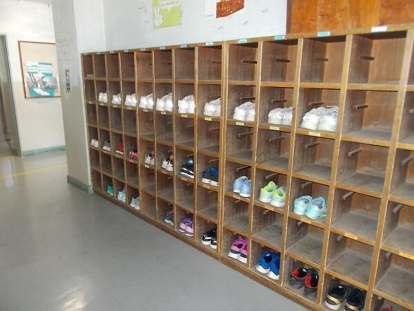 児童生徒玄関の靴箱の様子です。みんなきちんとかかとをそろえて入れています。
