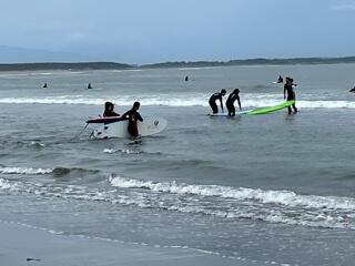 あいにくの曇り空ですが、サーフィンに夢中です。
