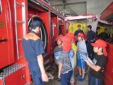 1年生は、訓練前の学習中です。3年生は、階段を静かに下りてきました。