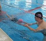水が苦手な児童は、顔をつけるところから丁寧に教えていただきました。