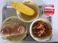 今日の給食は「西都の日」ということでスイートコーンが出ましたよ。