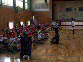 全員体育館に集合し、地区ごとに並んで先生の説明を聞きました。
