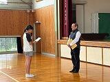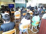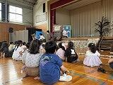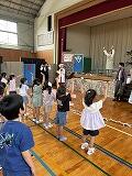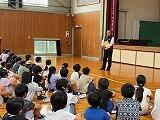 全校児童が体育館に集まった後は、スクールサポーターに不審者から身を守るポイントを教えていただきました。
