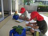 種をまいた朝顔もずいぶん大きくなりました。葉の数を数えたり、絵にかいたりしていました。