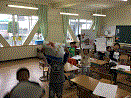 役割分担をして説明をしている2年生、楽しそうに聞いている1年生。