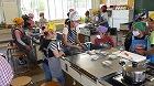ピーマンを洗って、包丁で切ってとみんなで手分けしながら、調理実習に取り組んでいました。