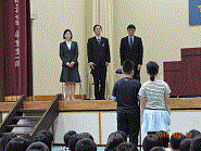 新任式では、新しく赴任された3名の先生方を紹介しました。