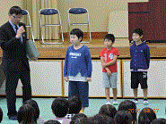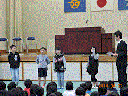 続いて転入の友だちが3人(本校に3年生1人、分校に3年生1人・4年生1人)紹介されました。