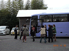 学級長から皆さんにあいさつがあり、いよいよバスに乗り込みました。