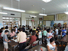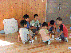 1年生を招待して、まとあて、糸電話、コリントゲーム・・・、いろんなコーナーで遊んでもらう活動です。