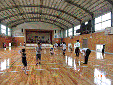 また、反対側では、1年生が転がしドッジボールをしていましたよ。