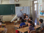 はじめに全学級の授業参観をしていただき、次に4年生に紙飛行機やかぶとの折り方を教えてくださいました。