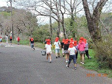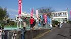 昨日、5年生が準備をしていた幟を、今日は城址入口の道路と学校の正門からの坂道に付けてくれました。