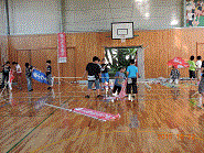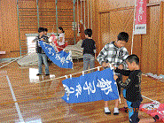 午後から5年生が体育館で明日の幟立ての準備をしてくれました。
