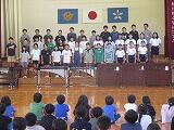今日の全校朝会は、11/7に行われる「西都市音楽会」に参加する5・6年生のリハーサルを行いました。