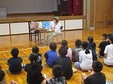 今日は、2学期の「お話タイム」でした。今回も、松下さんに来ていただき、3・4年生に読み聞かせをしてもらいました。その他の学年は、担任の先生や他のクラスの先生に読み聞かせをしてもらいました。いつもと違う先生の読み聞かせに、子供たちも楽しそうでした。