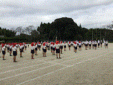 今日は、時折じりじりと熱い太陽が顔を出す中、運動会に向けた第1回の小中合同練習がありました。