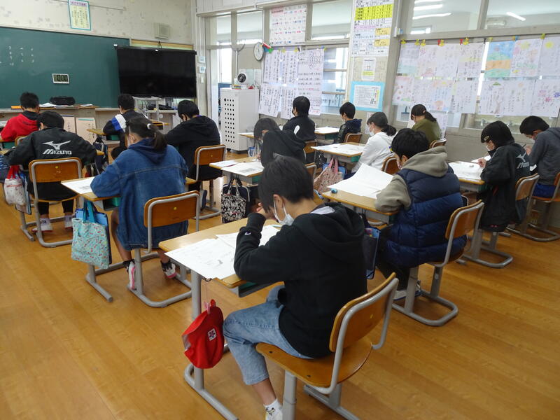 緊張感も漂う中、全学年において、国語・算数の問題に取り組みました。4・6年生においては、社会・理科の問題も実施しました。