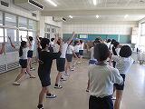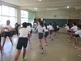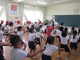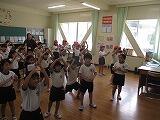 低学年では、熱中症対策の一環で、教室でダンスの練習をしていました。