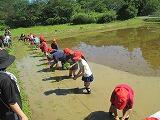 膝近くまで泥の中に入り、初めは「キャー!」といった声も聞かれましたが、泥まみれになりながらも一生懸命植えていました。
