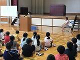 今日でご退職される事務室の矢野先生にごあいさつをいただき、代表児童がお礼の言葉を述べ、花束贈呈をしました。