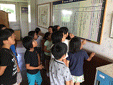 4年生がマンショの部屋から玄関にぞろぞろ歩いてきました。