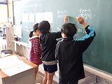 現在、都於郡小学校では、教職員の授業力の改善や児童の学力の向上を目指して、互いの授業を見合い、気がついたことを出し合うという取組を行っています。今日は、4年生の算数の授業が行われました。ペアや学級全体でこれまでの学習内容を確認し合ったり、自分が考えたことを説明し合ったりしながら、学習が進められました。
