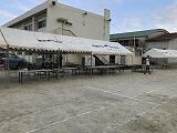 テント設営や入場門立てなどを小・中学生、職員で協力して行いました。
