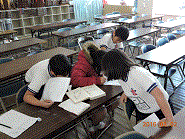 今日は4年生がマンショの部屋で調べ学習をしていました。