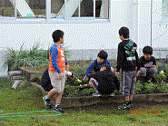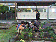 今朝は自主的に4年生が学級園のお世話をしていました。