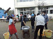 臼と杵でつくもちは、できあがりまでに時間がかかり、最後はお父さん方が仕上げをしてくださいました。