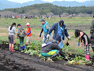 土が湿っていて大変でしたが、保護者と一緒にたくさん植えました。