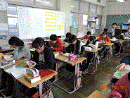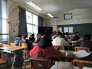 担任の先生が出張なので、6年生が自習してました。