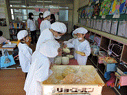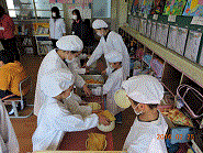1年生給食当番頑張っています