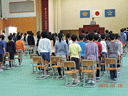 転出される2人の先生を元気のよい校歌で送り出しました。
