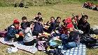 4年生は、先生から「お弁当を全部食べんと、おやつは食べられんよ。」と手作りの弁当がおやつに負けないように声をかけられていました。子ども達全部食べたようです。