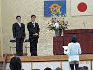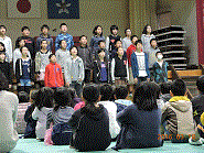 転出される2人の先生を元気のよい校歌で送り出しました。