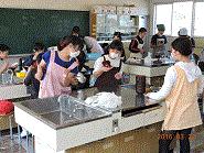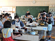 5年生が家庭科室でごはんと味噌汁を作っていました。