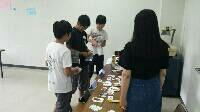 昼食を終え、午後の体験活動に向けて、残金を確認したり、次に行く国を決めたりしています。