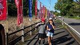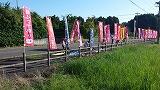 城址祭り実行委員会の立てている旗と旗の間に、立てたのでまた一段と祭りの雰囲気が強く感じられるようになりました。