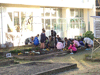 今日もとっても寒かったのですが、5年生はみんなで花壇に出て、花の世話をしていました。