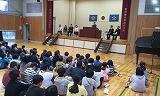 始業式での新6年生の発表です。 校歌の伴奏をしてくれた新6