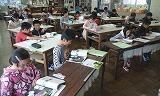 都於郡小の図書室には、子ども達に大人気のシリーズ物の物語や絵本、調べ活動で利用する事典や図鑑など大変多くの本が置いてあります。今日の昼休みには、読書好きの男の子が本を借りに来ていました。5時間目には、2年生がお気に入りの本を見つけ、楽しそうに読んでいました。新しい本も整備され、ますます楽しくなっていく図書室です。