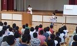 『からいも交流・夏』で宮崎に来県されている、香港の趙婉岐(チョーエンキ)さんと台湾の蔡家姍(サイカサン)さんのお二人が、都於郡小を訪問してくださいました。学級を回って香港や台湾の紹介をしてくださったり、子ども達の質問に応えてくださったりしました。「香港の自宅は80階建ての24階です。」というお話で「エーッ!!にじゅーよんかいー!!!」と驚き、「好きな日本食は、ラーメンです。」のお話で「わたしも!ぼくも!!」と盛り上がり、短い時間ではありましたが、国際交流を楽しんだ子ども達でした。今後、いろいろな国の方々との交流が増えたり、都於郡の子ども達が伊東マンショのように日本の代表として海外で活躍したりするといいなと思いました。