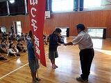登城旗授与式がありました。以前、バラエティ番組の珍百景に登録された時代行列。その際、大隊長や小隊長が持って更新する旗の授与式です。